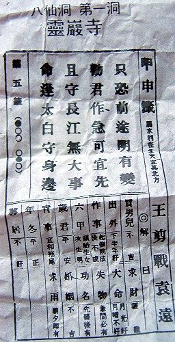 與廟宇的木條夾紙籤不同,旁邊有個小石頭,是要讓你砸開籤球的,